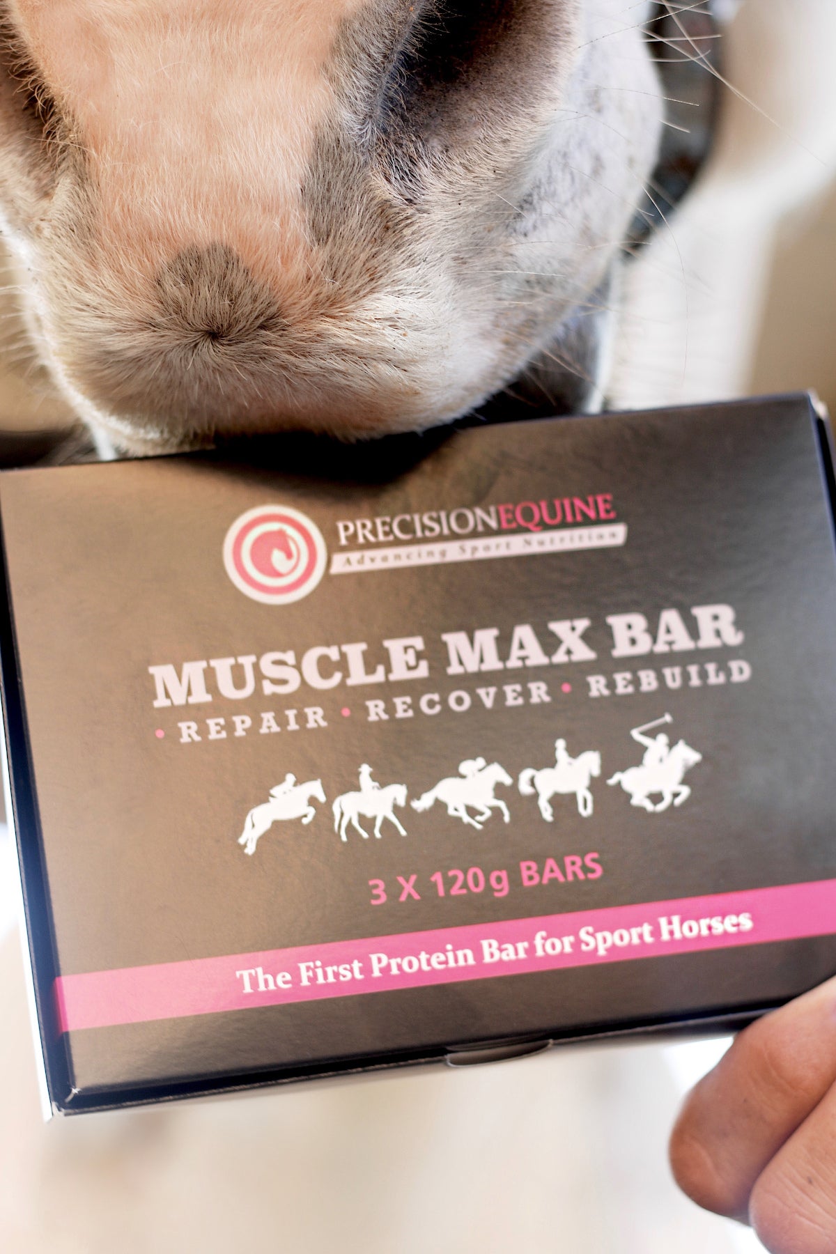 MUSCLE MAX BAR gives your horse an instant muscle building and repair boost after training and performance. Packed with highly digestible protein and amino acids to aid muscle recovery and rebuilding. Ideal for horses in all types of work, competition safe, and perfect for older horses who need to build topline.