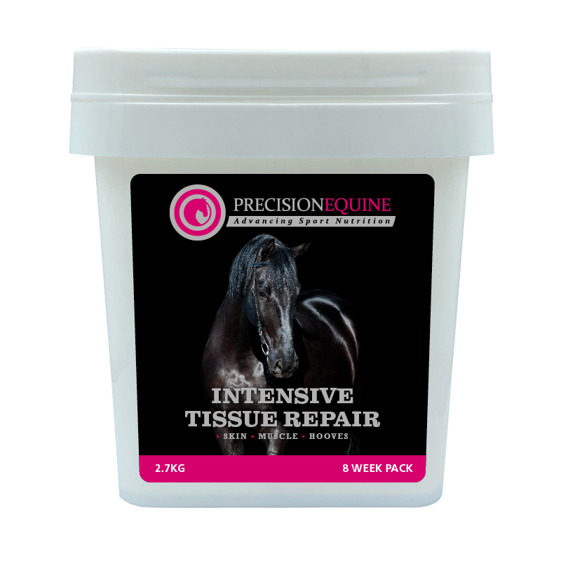 When body tissues are injured or damaged the horses nutrient requirements for Essential Amino Acids increase significantly as they are required to construct the protein building blocks for repair and regeneration of damaged tissues. If inadequate amounts of the Essential Amino Acids are provided by the diet healing processes may be delayed and the quality of the new tissue growth may be compromised.  INTENSIVE TISSUE REPAIR powder ensures there is an abundant supply of these EAAs in the horses daily feed intake.