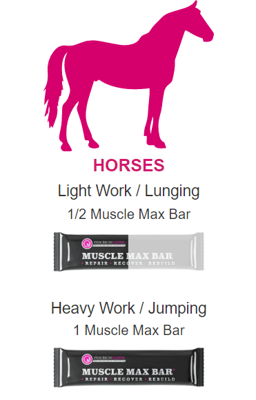 Supercharge Muscle Stamina - Feed MUSCLE MAX BARS to your horse 30 minutes before commencing strenuous training and performance to delay muscle fatigue and elevate endurance.